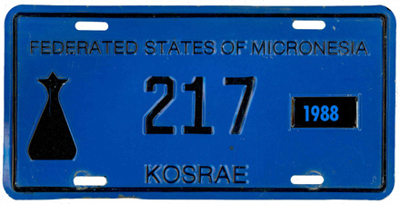 Kosrae's license plate history goes back to 1977, when the island was part of the Trust Territory of the Pacific Islands (T.T.P.I.), which was being administered by the United States of America. During the 1980s, the island of Kosrae became part of the Federated States of Micronesia.