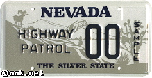 FIRST YEAR OF ISSUE: 1986 PLATE TYPE: OPTIONAL ISSUE BASE MATERIAL: ALUMINUM REFLECTORIZATION: PARTIAL - BACKGROUND ONLY VALIDATION: NO DECALS USED ON THE PLATE NOTES: FOR USE BY THE NEVADA HIGHWAY PATROL