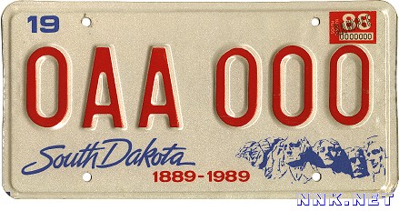 REFERENCE NUMBER: SD-1989FIRST YEAR OF ISSUE: 1987 PLATE TYPE: GENERAL ISSUE BASE MATERIAL: STEEL REFLECTORIZATION: PARTIAL - BACKGROUND ONLY VALIDATION: 1 DECAL ON EACH PLATE NOTES: RED SERIAL ON REFLECTIVE GRAPHIC BASE