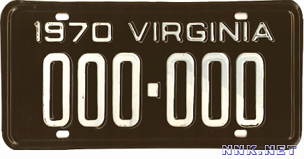 REFERENCE NUMBER: VA-1970FIRST YEAR OF ISSUE: 1970 PLATE TYPE: GENERAL ISSUE BASE MATERIAL: STEEL REFLECTORIZATION: NON-REFLECTIVE VALIDATION: NO DECALS USED ON PLATE NOTES: WHITE SERIAL ON BLACK BASE